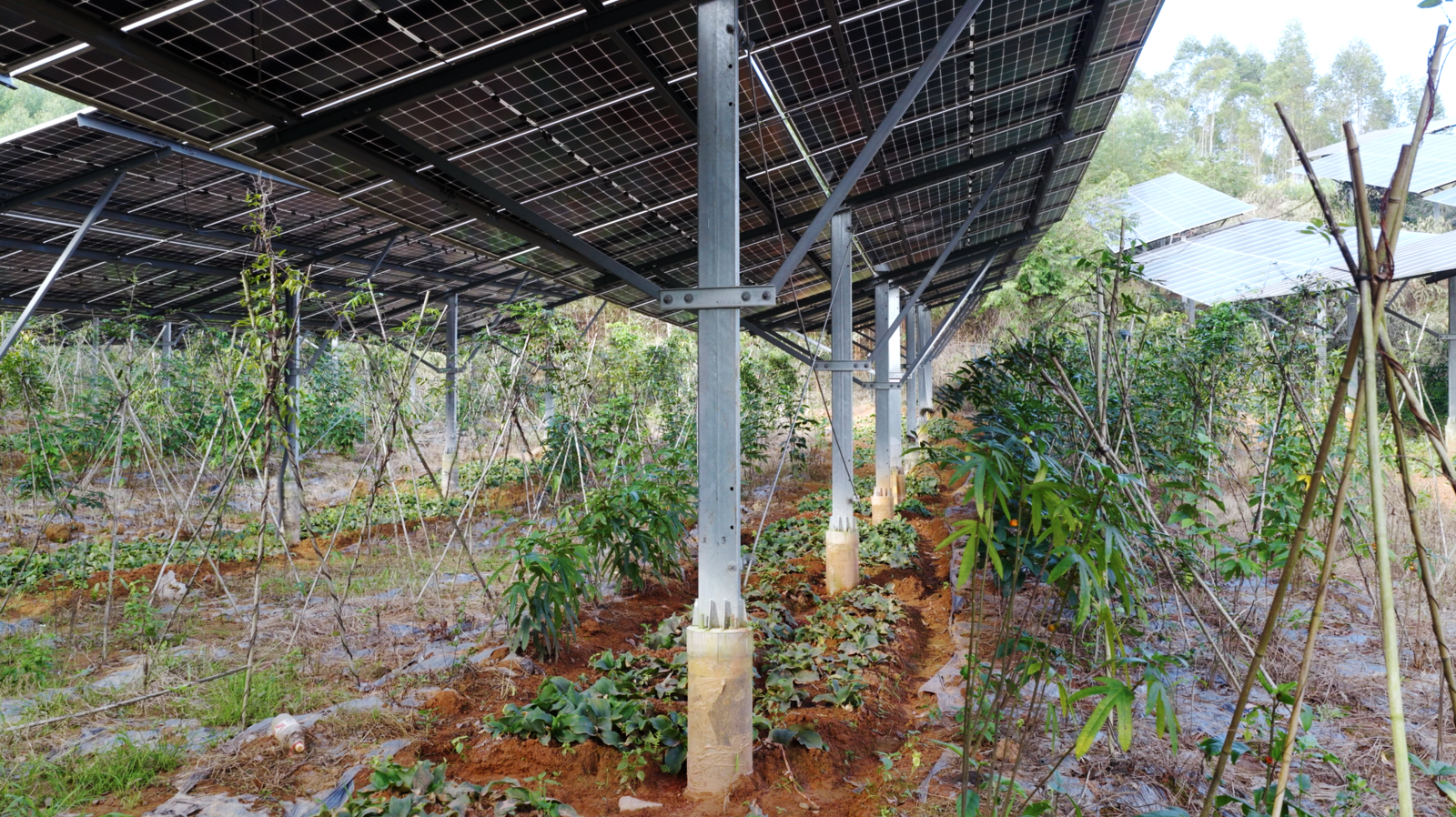 •Significant Ecological and Socioeconomic Benefits: The plant generates substantial clean electricity annually, contributing to regional carbon emission reduction. Meanwhile, the land beneath the arrays is utilized for specialty agricultural cultivation, creating a dual-revenue model of “PV power generation income + agricultural product sales income.” This approach significantly improves land-use efficiency and increases farmers’ income. The project successfully demonstrates the feasibility of large-scale agri-PV deployment in humid mountainous regions. Its combination of durable materials for safety and optimized structural height for true synergy provides a replicable and scalable model for promoting integrated “PV + agriculture” development across southern hilly areas.